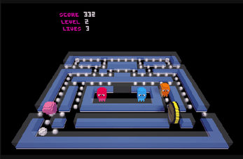 Hacman(v0.7b) came out of my work-team's annual "less-than-a-day hack-a-thons". The goal was "build a Pac-Man with a tool you haven't ever used before". Thanks Voxatron, you were fun to use!